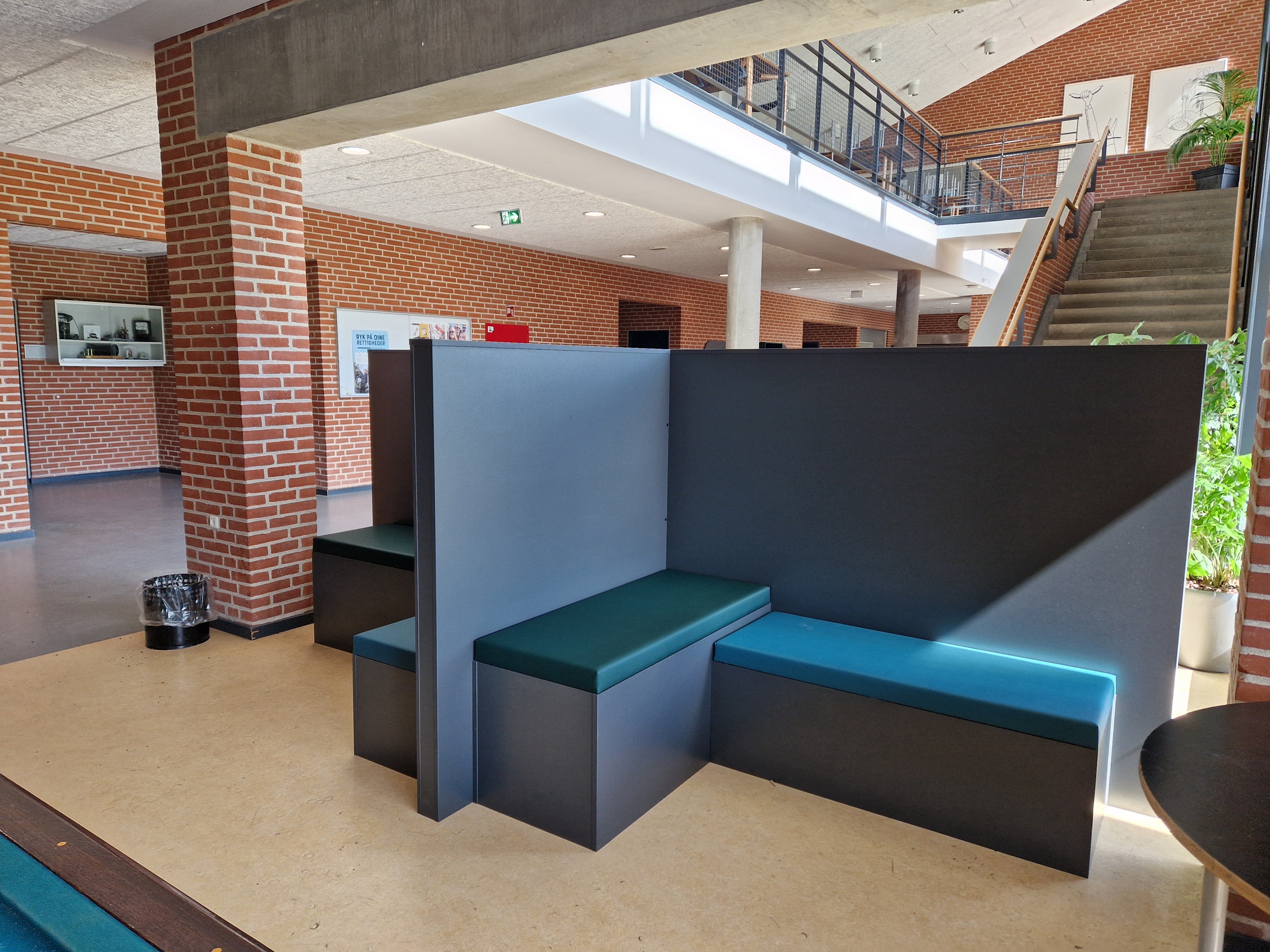 LYKK Design blev spurgt, om vi ville give et bud på en kreativ totalindretning til de nyrenoverede PLC lokaler på Lyshøjskolen i Kolding.